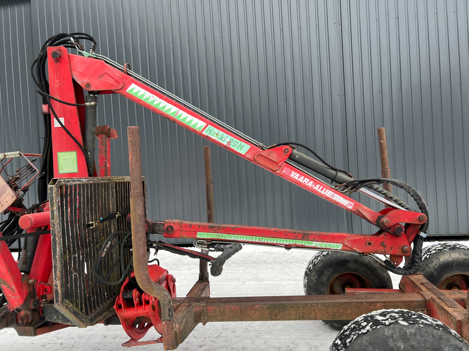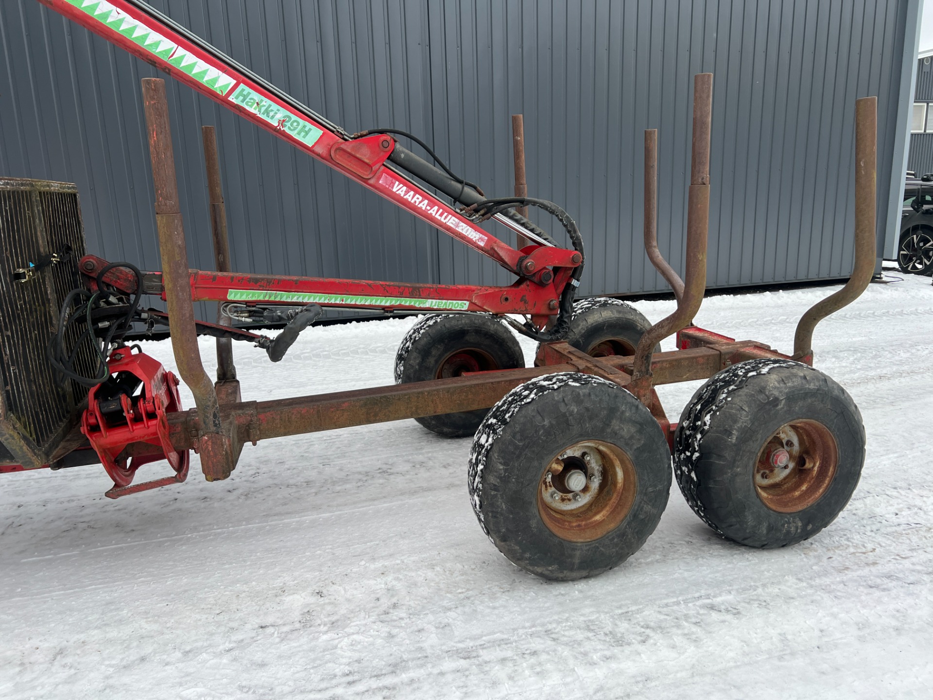 Hakki 29H kuormain + 1-palkki metsävaunu.